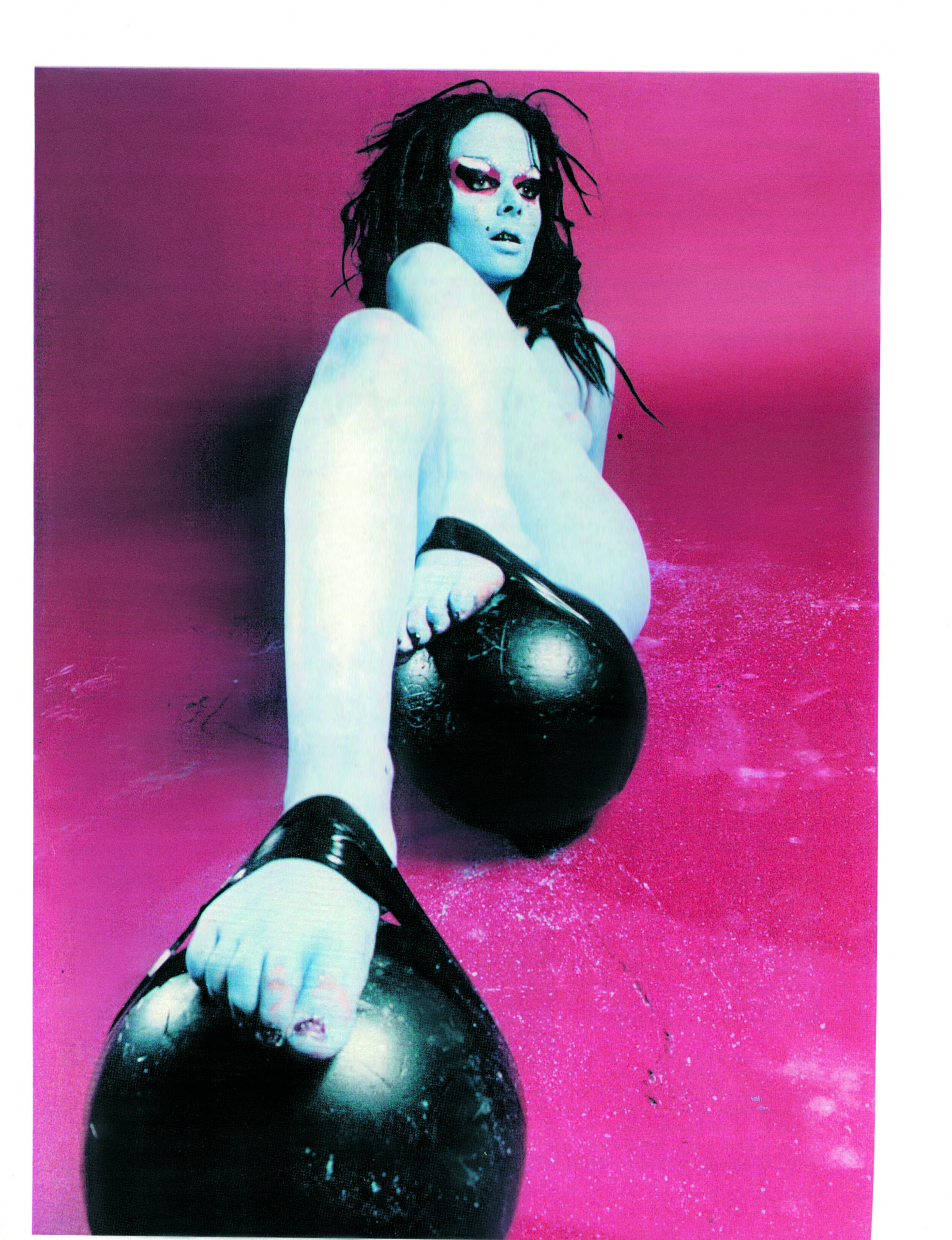 Kembra with Tape and Bowling Balls, 1995. Richard Kern.