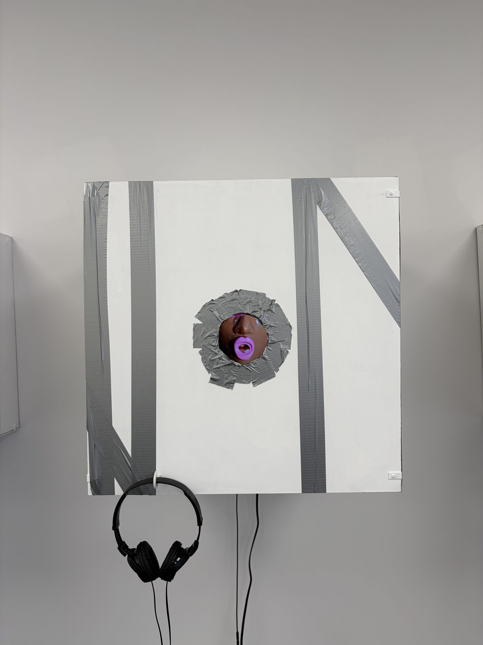 Richie Shazam is on a healing journey, turning herself into dolls in order to remake her own image. In her debut solo exhibition I Was Never Meant to Survive This, which opened last month in Austin at McLennon Pen Co. gallery, Shazam built a fantastical deconstruction of the self through a series of self-portraits composed of tissue-paper vaginas, big-lipped sex doll masks, and streaks of blue paint to render herself feline. To mark the show’s opening, we asked her about self-mythology and what it means to dissect a body that’s always on display.