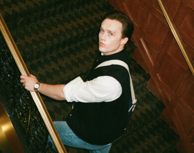 SHIRT: T BY ALEXANDER WANG. TURTLENECK: HILFIGER COLLECTION.PANTS: LOEWE. BELT: SUZI ROHER. EARRING: ERIN CONSIDINE. STYLING: ELIN SVAHN. HAIR: TOMO JIDAI FOR MOROCCAN OIL/STREETERS. MAKEUP: SALLY BRANKA/LGA MANAGEMENT. MANICURE: GINA EDWARDS FOR DIOR VERNIS/KATE RYAN. PRODUCTION: BO ZHANG. DIGITAL TECHNICIAN: ERICA CAPABIANCA.