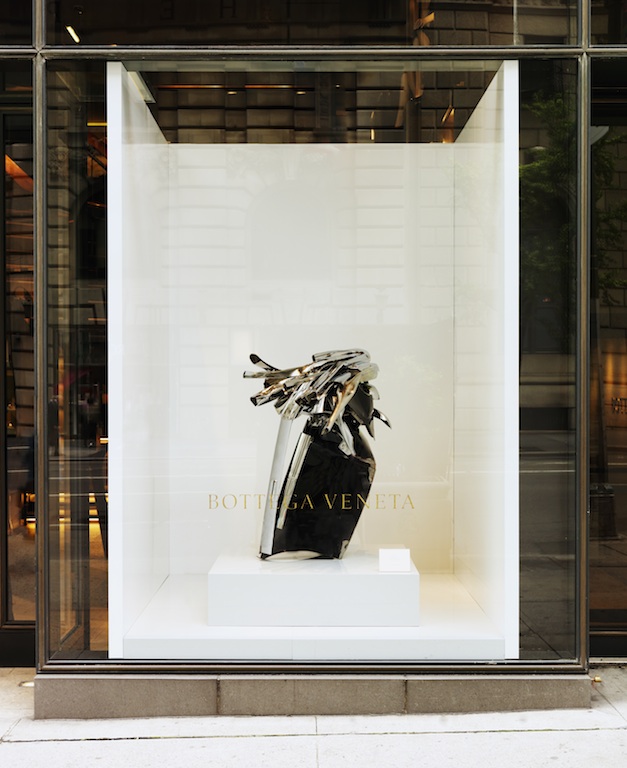 Bottega Veneta is exceedingly well versed in its art history. The Italian fashion house, which has collaborated with the likes of Ralph Gibson, Nan Goldin, Collier Schorr, and Philip-Lorca diCorcia on a series of ad campaigns, continues to work closely with its artistic touchstones. In honor of New York Fashion Week, the luxury brand is partnering with Gagosian Gallery in showcasing select works by American sculptor John Chamberlain in the windows of their Fifth Avenue flagship store.