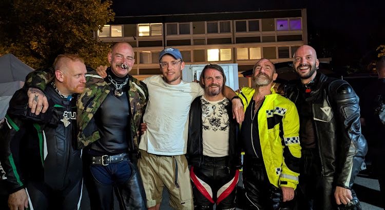 LIGHTON: Well, it now seems very self-evident to me, but there’s sometimes a misconception that all of the GBMCC are all involved in kink. It’s not a club about sex; it’s about biking. But on the kink subject, there’s this misconception that all they do is fuck or talk about fucking. And I remember going on this weekend of them riding their motorbikes, and we stopped off for a coffee, and there was this really banal conversation about the way urban foxes were spreading through London. It was the kind of conversation I’d have with my dad on a weekend. And I was like, “Oh, well, that’s a really good thing to include in the film.” The fact that banality can exist alongside a woodside orgy.
