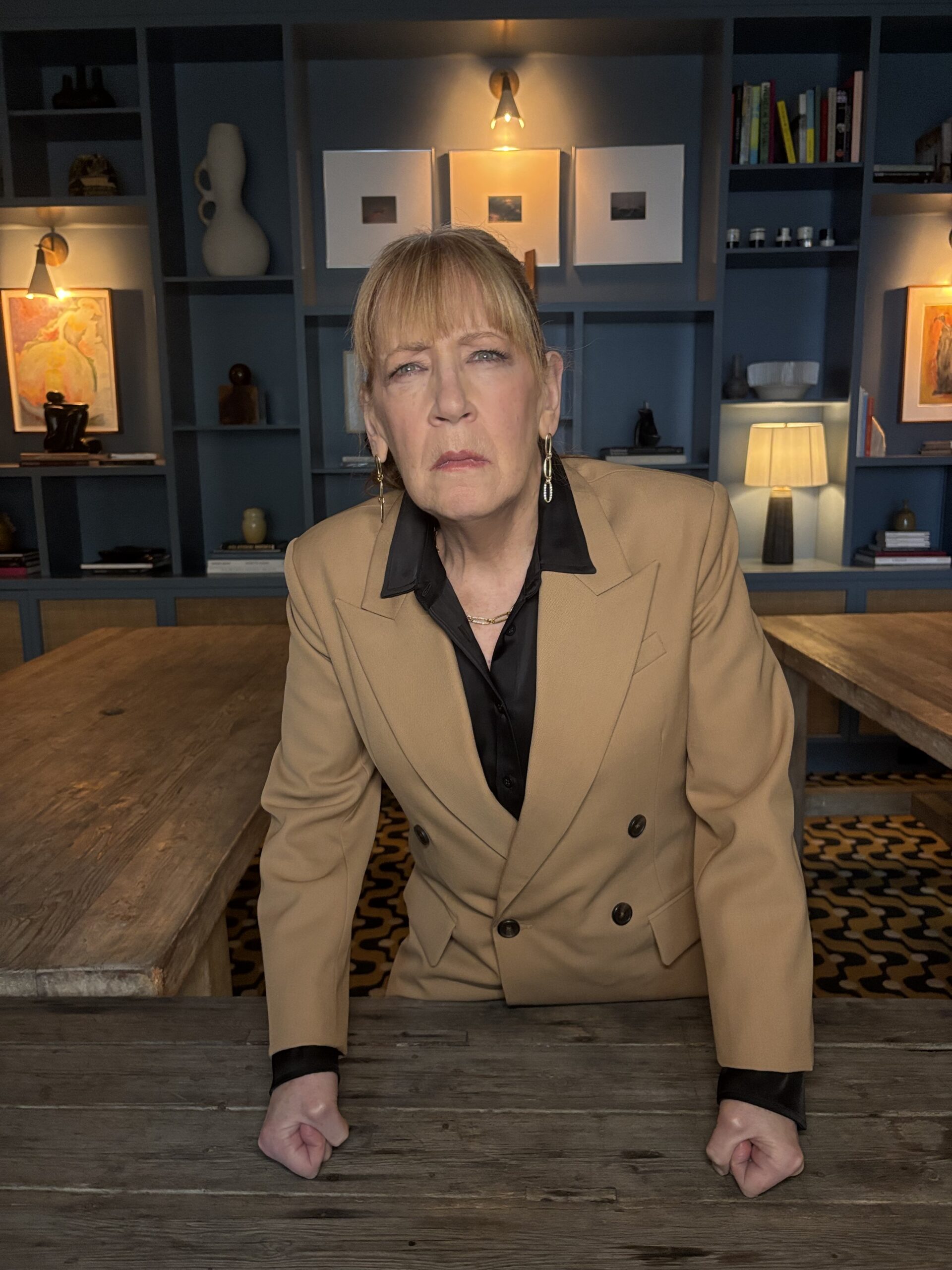 It’s a gorgeous spring afternoon on the Lower East Side, and I’m counting each clack of my heels against the pavement as I traverse the short distance between my apartment and Nine Orchard. After nearly 3 years of posting online under the screen name Bald Ann Dowd, an absurd bit whose conception and traction I still struggle to explain, I’ve been invited to interview the real, haired, and acclaimed Ann Dowd, who, in Hulu’s The Testaments, is about to reprise her Emmy-winning role of Aunt Lydia, one of television’s most compelling and menacing antagonists. Dowd has quietly been acting circles around her peers for decades, flawlessly embodying each character she sinks her teeth into: a childlike yet nightmare-inducing family member in True Detective, an empathetic and grief-wracked mother in Mass, and (perhaps my favorite) The Leftovers‘s nihilistic and off-kilter cult leader, Patti Levin, who delightfully toes the line between villain and slapstick comedian. I revere her body of work deeply, so much so that I, as only a specific type of internet-brained Zillennial could, have inadvertently melded our identities together into some sort of niche and nonsensical digital community leader. She should not have to know who I am.