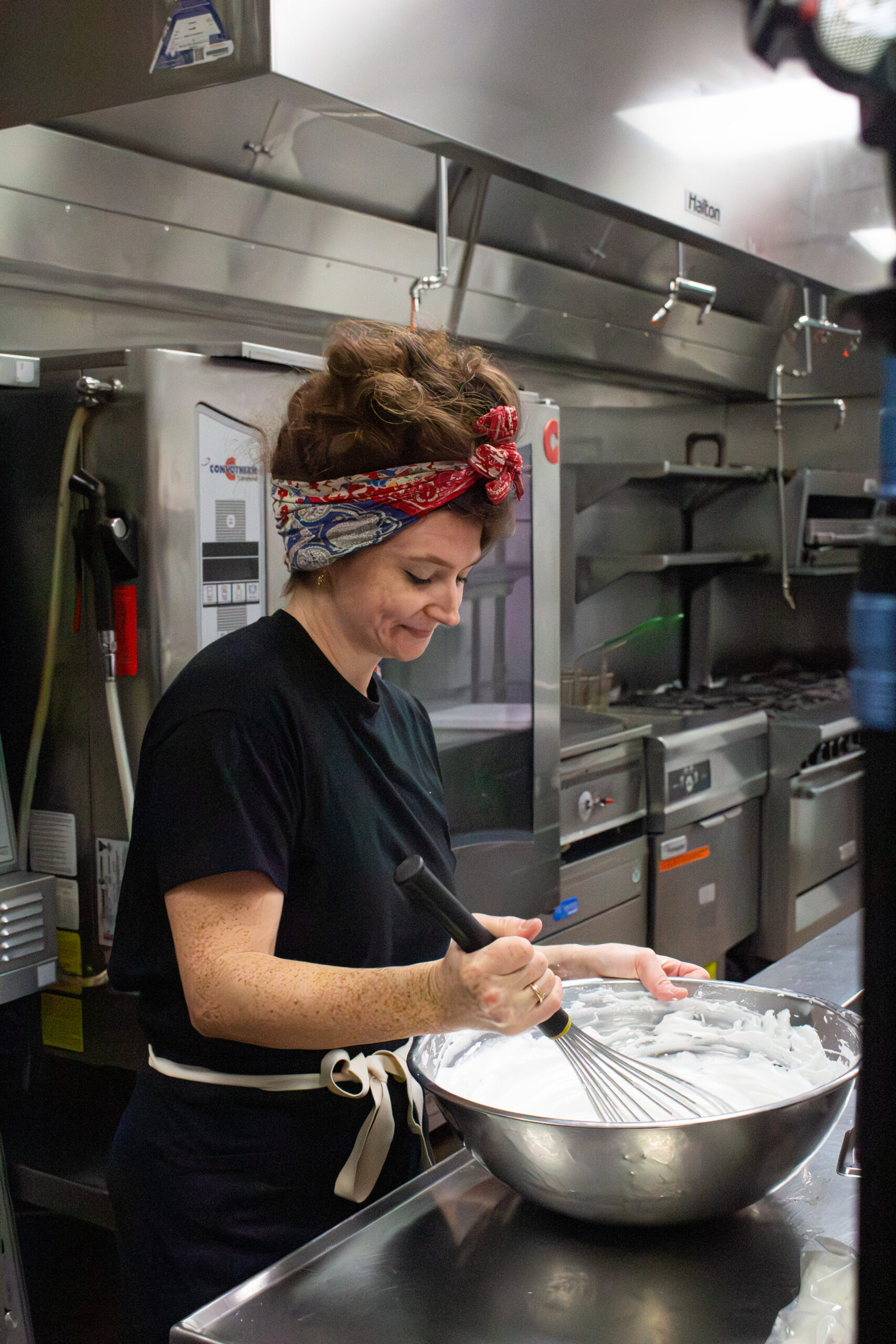 I first came across her work when she was the Executive Pastry Chef at Brooklyn’s Gage & Tollner. She has since pivoted to her next concept, a chic and Schiffian twist on old-timey diner classics. I recently drove to Palm Springs just to try her latest creations, approachable but elevated, just like Schiff. This month, she’s hosting a pop-up dinner series at the Brooklyn Museum, where the menu includes doughnuts, deviled eggs, and Schiff’s trademark coconut sheet cake, another of her characteristically tall and scrumptious creations). Since I am stuck in Los Angeles, we hopped on a Zoom last month so Schiff could walk me through her process.