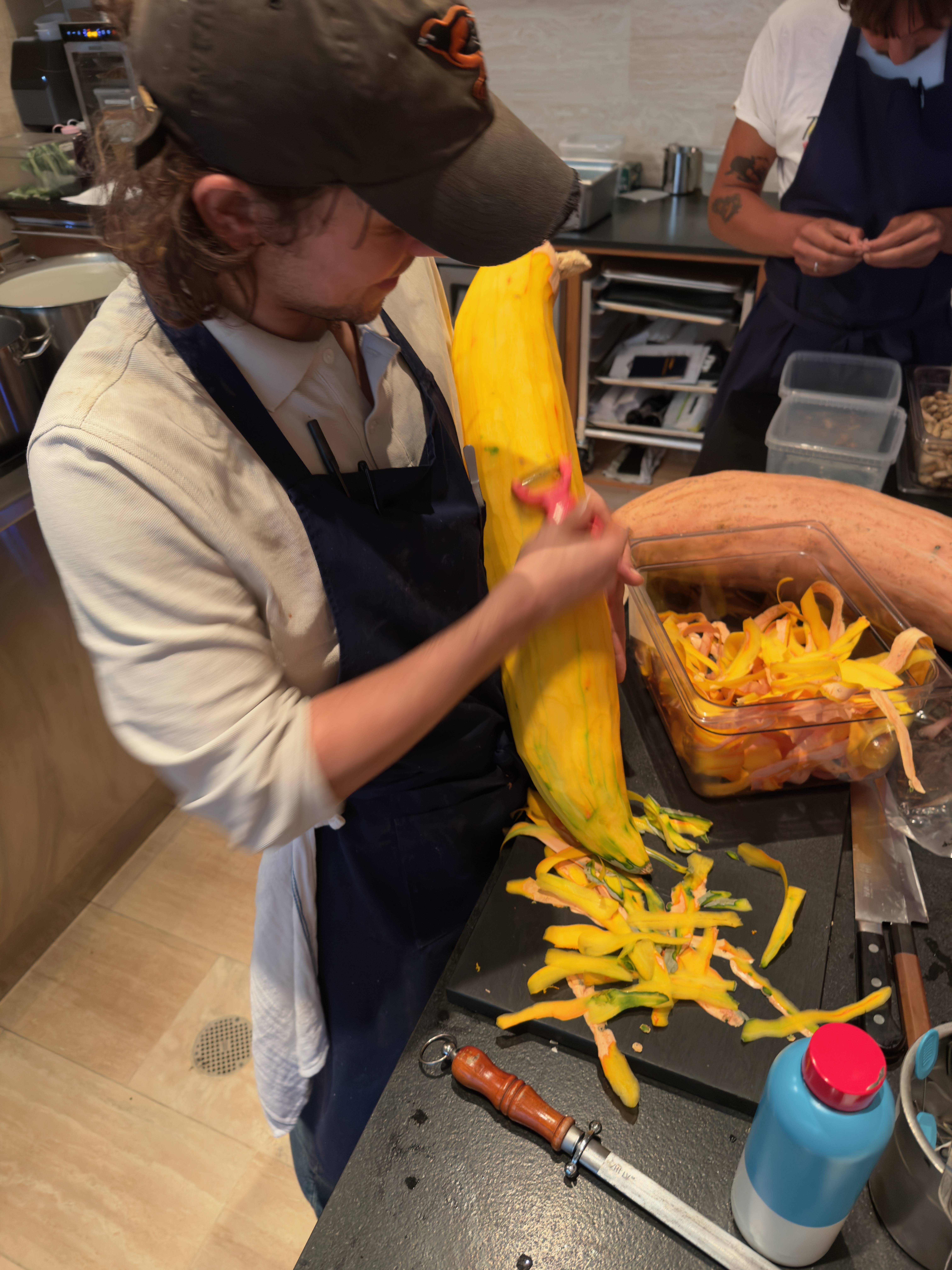 September 3rd was our announcement day. After two-and-a-half years, it was time to show what we’ve been working on. T Magazine was posted and the day should’ve been spent reflecting and excitedly sharing, but it was also our first full day in the kitchen. We were prepping for an offsite event in Long Island. It was a day to find a rhythm within our kitchen team. We spent lots of time on large projects—peeling pounds of small tomatoes, drying peppers, killing and cleaning lobsters. I had been worried about how long it would take to find our confidence using the kitchen, but by the end of the day it was starting to feel natural, even with a broken fridge.