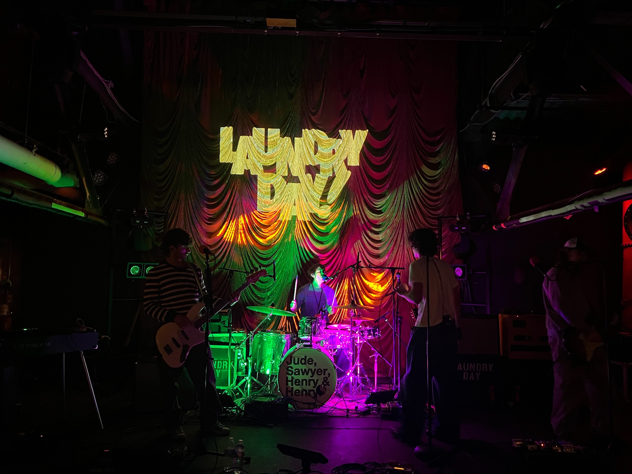 You’ve probably seen New York’s own Laundry Day going viral on TikTok for their hilarious covers and skits. But when they joined us last month over Zoom, they were behind the wheel, cruising down a highway “somewhere between Chicago and Denver,” as they put it. The band–comprised of vocalist Jude Ciulla-Lipkin, vocalist and drummer Sawyer Nunes, guitarist Henry Weingartner, and bassist Henry Pearl–is currently touring their brand-new album, EARWORM, featuring a plethora of colorful, upbeat tracks intended to get their devoted audience on its feet. While recording the album last year, the boys had one governing principle. “Can you throw it on aux?,” says Pearl. “Would it be a vibe?” Based on the reception at their live shows, where there have been mosh pits and even one marriage proposal, the answer is a resounding yes. In this week’s installment of Tour Diary, the pop-rock quartet talked about their touring essentials, sleeping “butt to butt,” and how their deepening friendships allowed them to make their best and most idiosyncratic record yet.